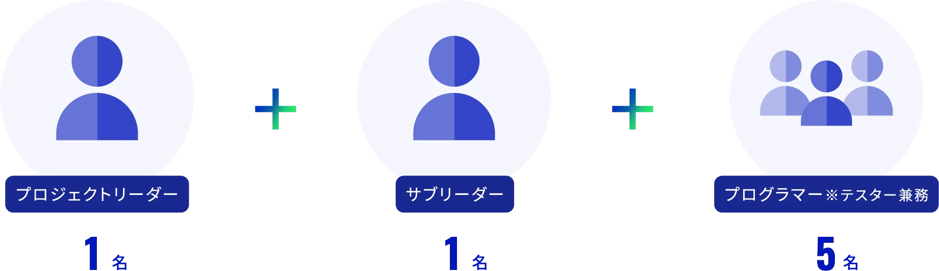 プロジェクトリーダー(PL)は顧客との仕様調整を行います。サブリーダー(SL)が調整された仕様を設計書等に落とし込み、プログラマー(PG)が開発及び試験を行います。技術的な課題が挙がった場合はPL及びSLのどちらかが対応します。