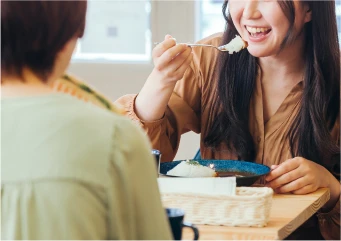 出社した際は、4Fのテナント専用の社員食堂をメンバーや他部署の方と一緒にお昼を食べます。